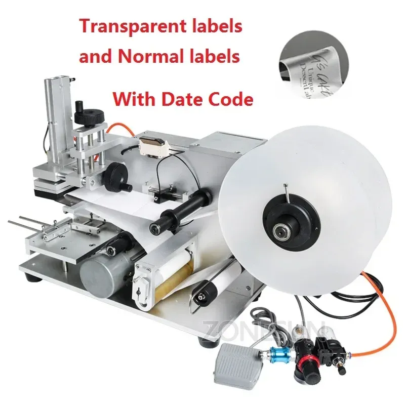 ZONESUN LT-60D Semi Automatic Flat Labeling Machine with Date Code for Plastic Glass Bottle Box Jar Packaging