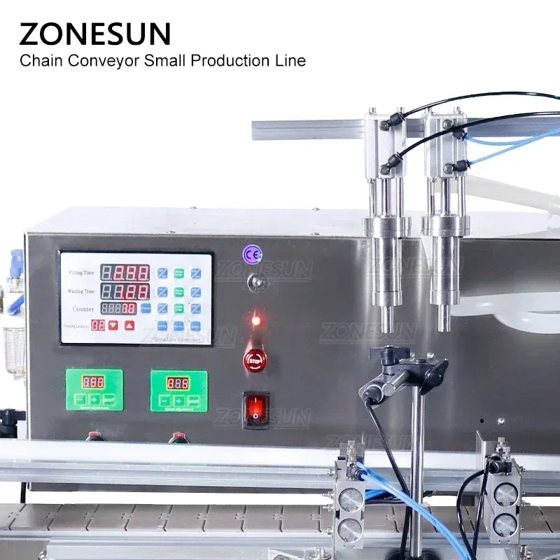 This small production line has the function of unscrambling, filling, capping, labeling and sorting bottles, improving work efficiency. With chain conveyor, it has a large loading capacity, enabling it to transport heavy products steadily and smoothly. The pneumatic filling machine can be used for thicker liquid like gel. The production line can be widely used in pharmaceutical, cosmetic, beverage industries. Help to improve work efficiency.