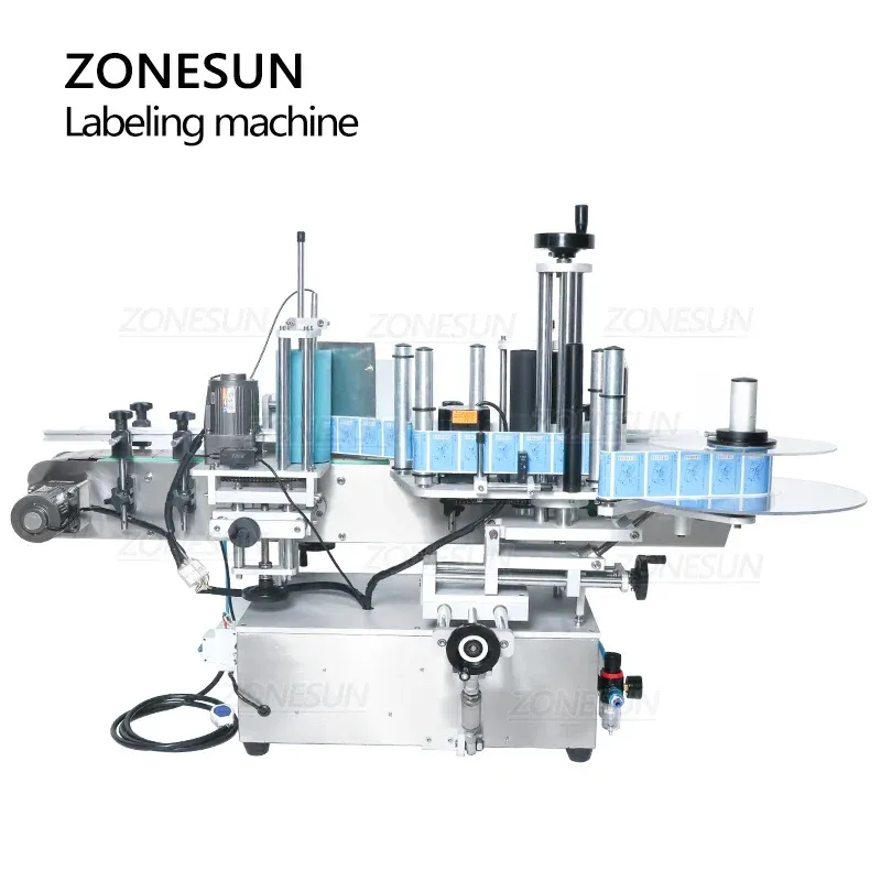 ZONESUN TB-500A Automatic Double Sides Label Sticker Jar Water PET Round Bottle Positioning and Labeling Machine with Date Coder