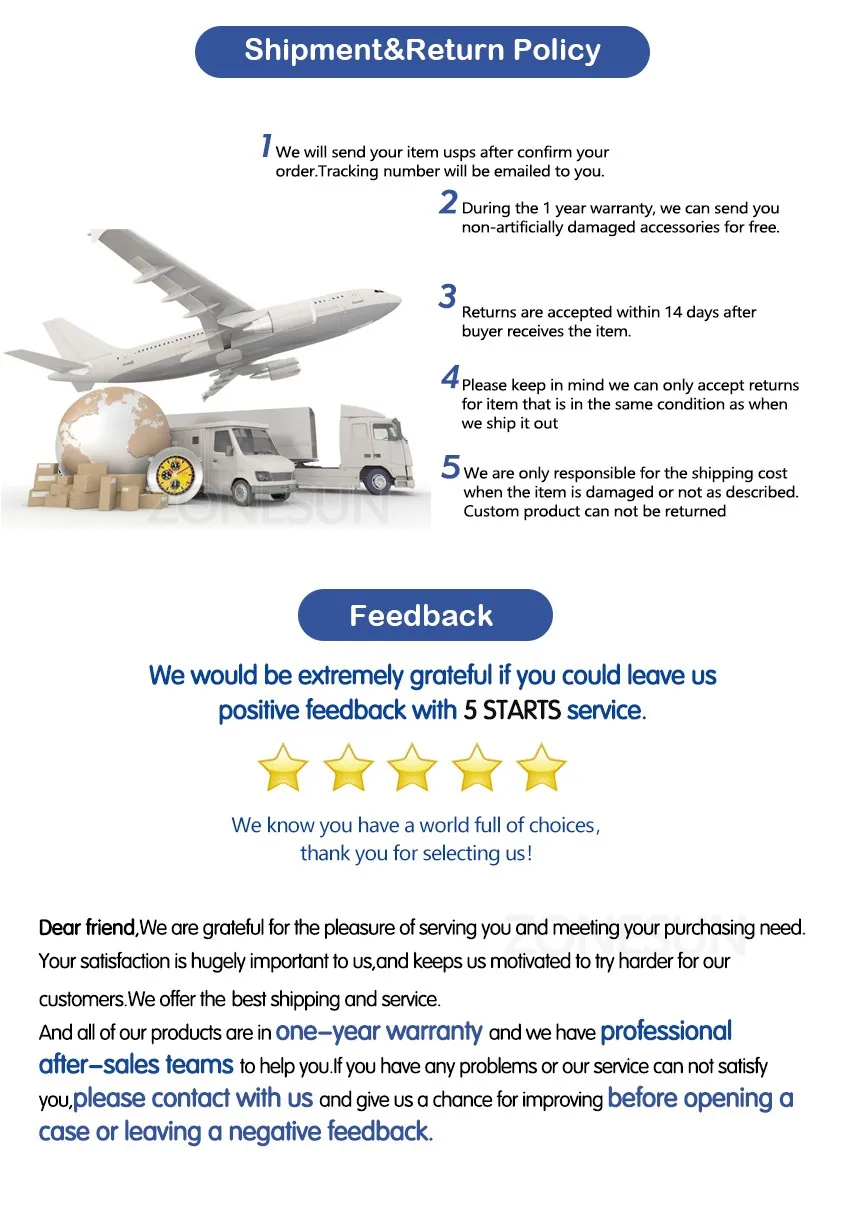 If you receive a damaged, defective, or incorrect item, please contact us within 7 days of delivery and provide clear photos of the product and packaging. We will arrange a replacement or full refund at no additional cost.