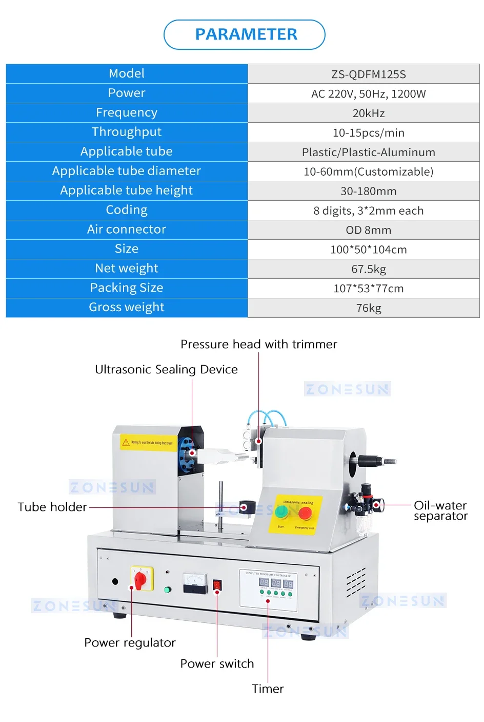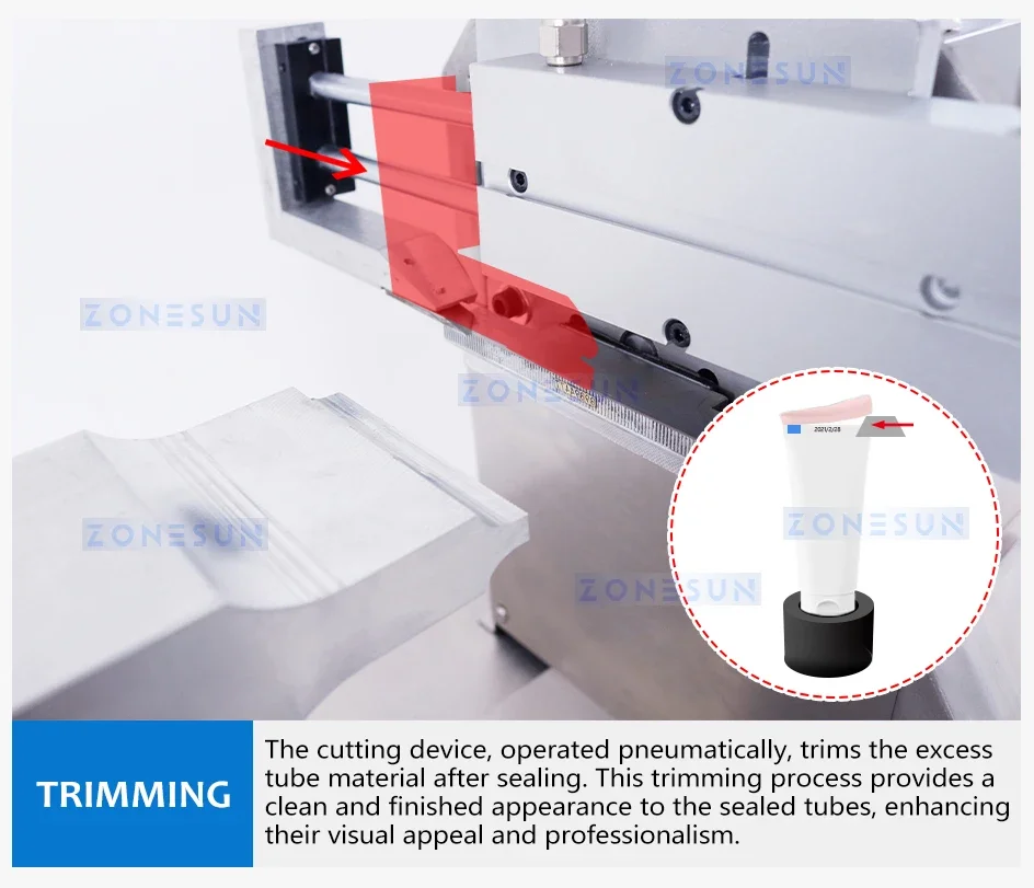 This machine is suitable for sealing soft tube like toothpaste, sun cream, hand cream, shampoo, etc. It is with cutting function, which can cut off the needless tube after sealing. The machine can be equipped with date coder, which can help to print batch or production date on the tube. Save labor cost and improve work efficiency.