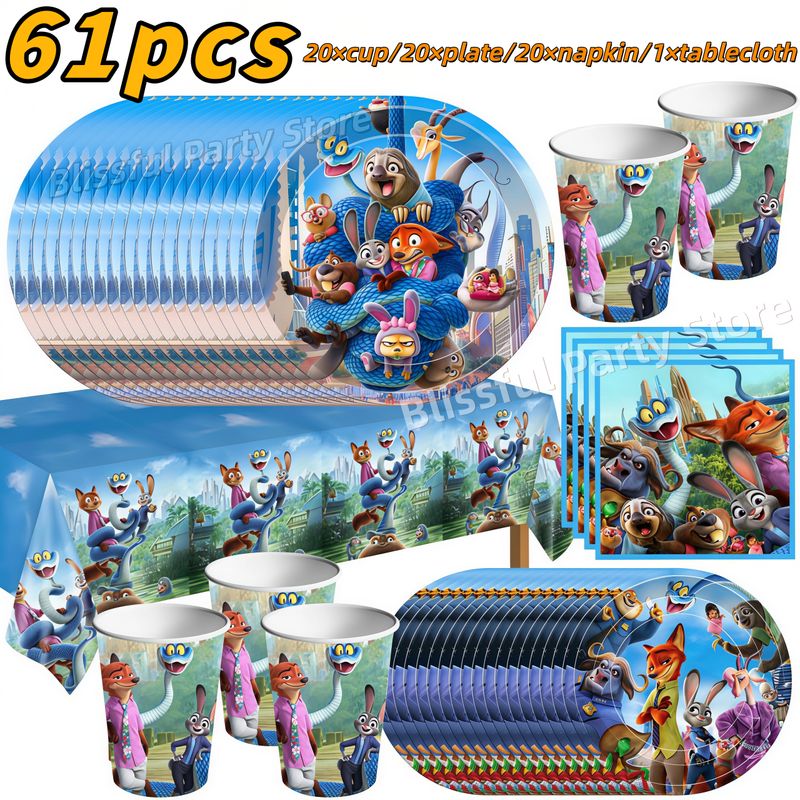 Zootopia 2 Birthday Party Decoration Tableware Kit Cup Plate Judy Nick Balloons Boy Girls Favor Gifts Baby Shower Party Supplies