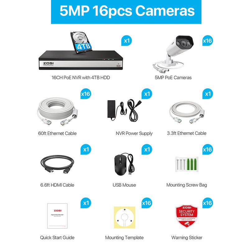 ZOSI 16CH 8MP/5MP PoE Security Camera System AI Person Vehicle Detection 2 Way Audio IP Cam 4K CCTV Video Surveillance NVR Kit