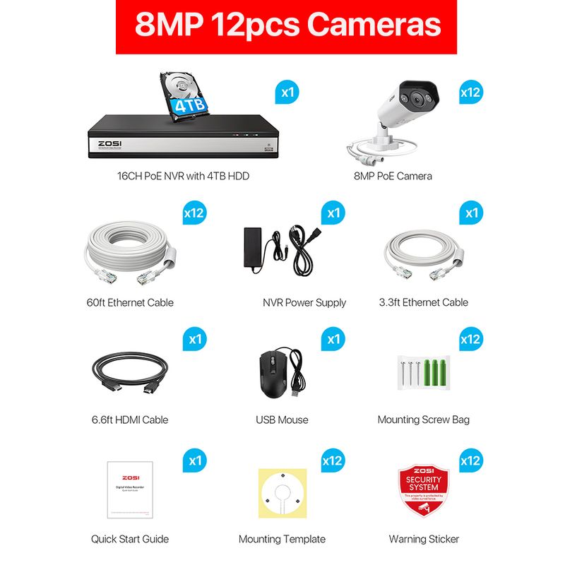 ZOSI 16CH 8MP/5MP PoE Security Camera System AI Person Vehicle Detection 2 Way Audio IP Cam 4K CCTV Video Surveillance NVR Kit