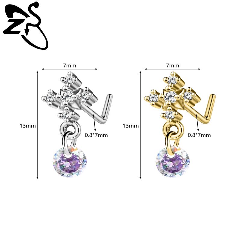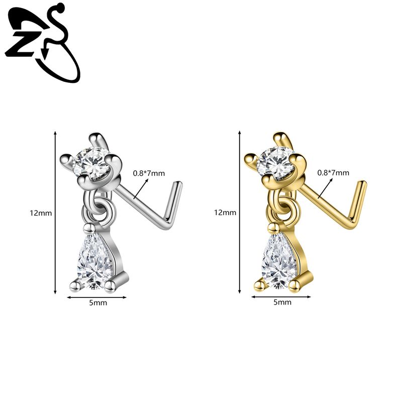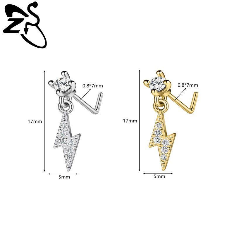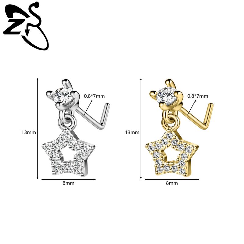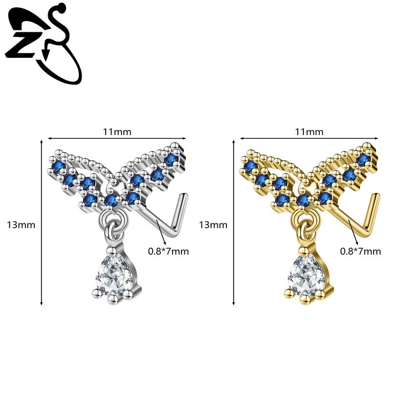ZS 1 PC 20G Stainless Steel Nose Ring 7MM L Rod Nose Stud Moon butterfly Shape Pendant Earring Helix Cartilage Piercings Jewelry