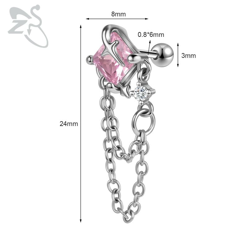 ZS 1 Piece 20G Cute Heart Stud Earring For Children Women Pink CZ Crystal Earrings Ear Cartilage Helix Conch Piercing Jewelry