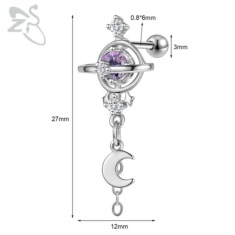 ZS 1 Piece 20G Cute Heart Stud Earring For Children Women Pink CZ Crystal Earrings Ear Cartilage Helix Conch Piercing Jewelry