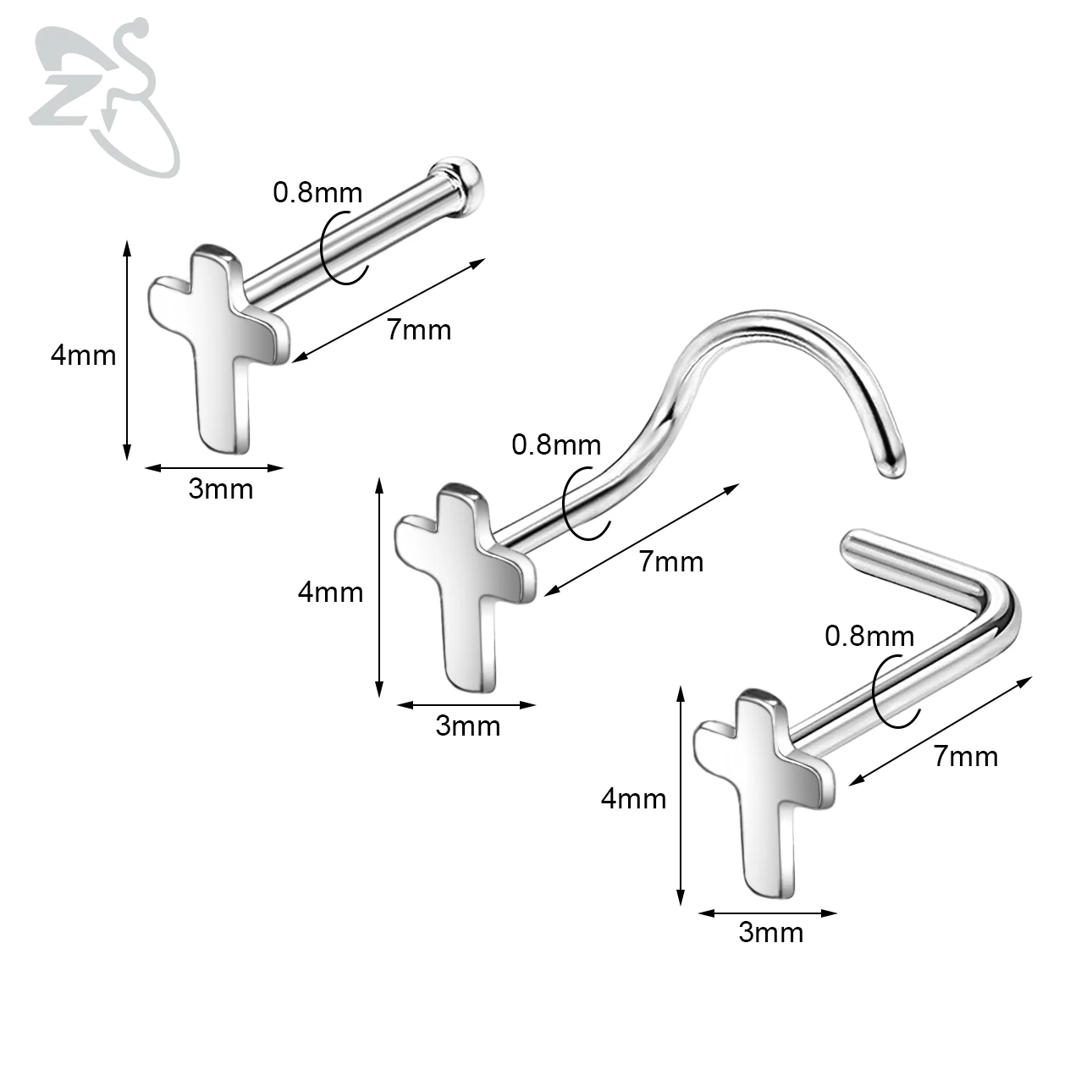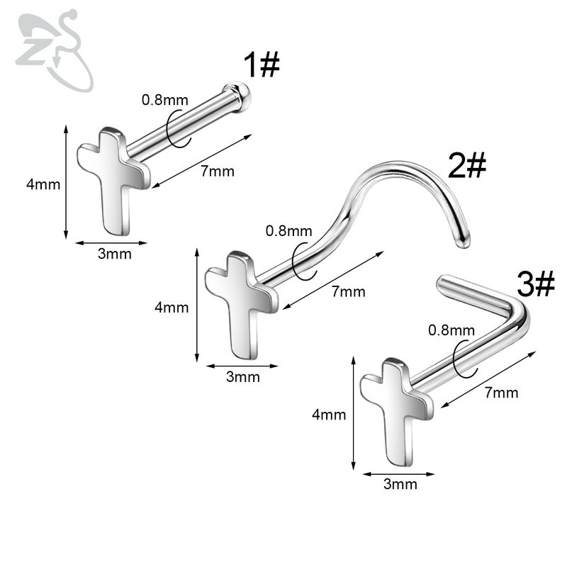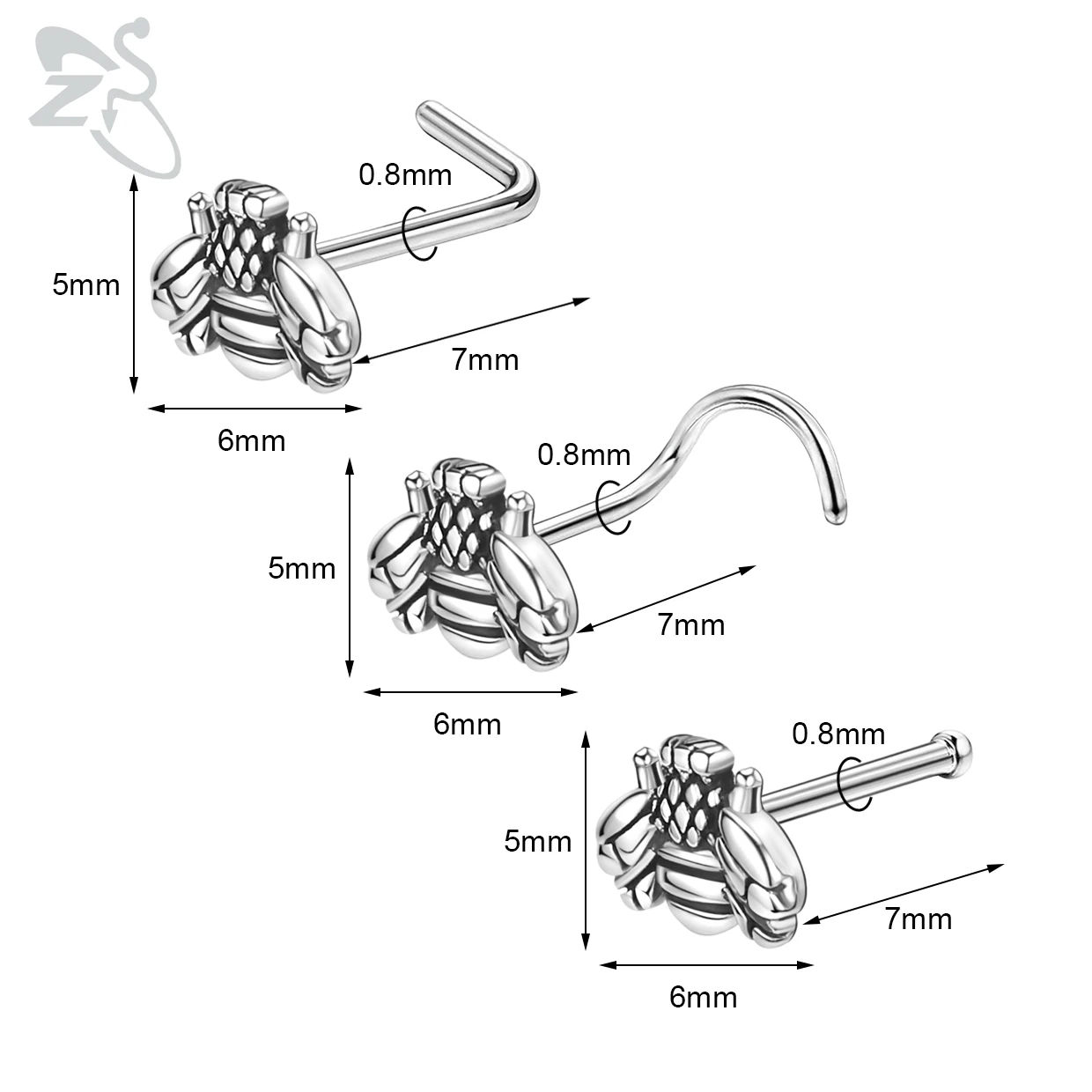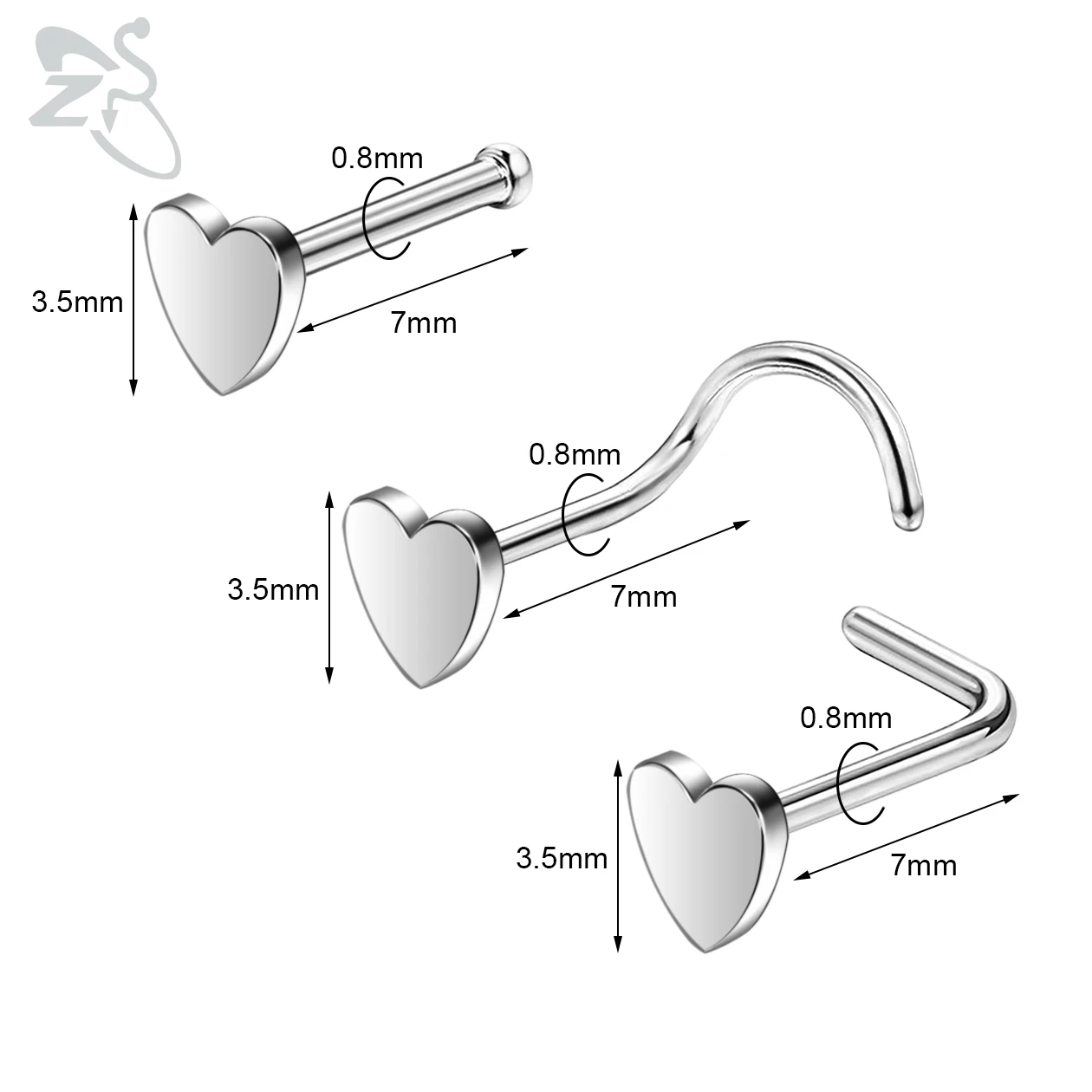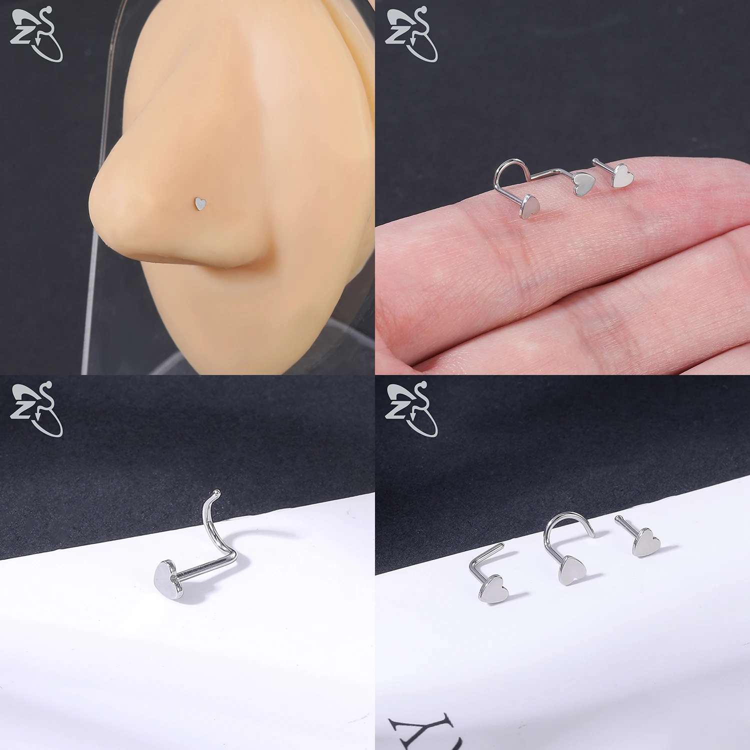 ZS 1 Piece CZ Crystal Nose Stud Men Heart Bee Cross Shape 316L Stainless Steel Retainer Pin L Shape Nostril Piercing Jewelry 20g