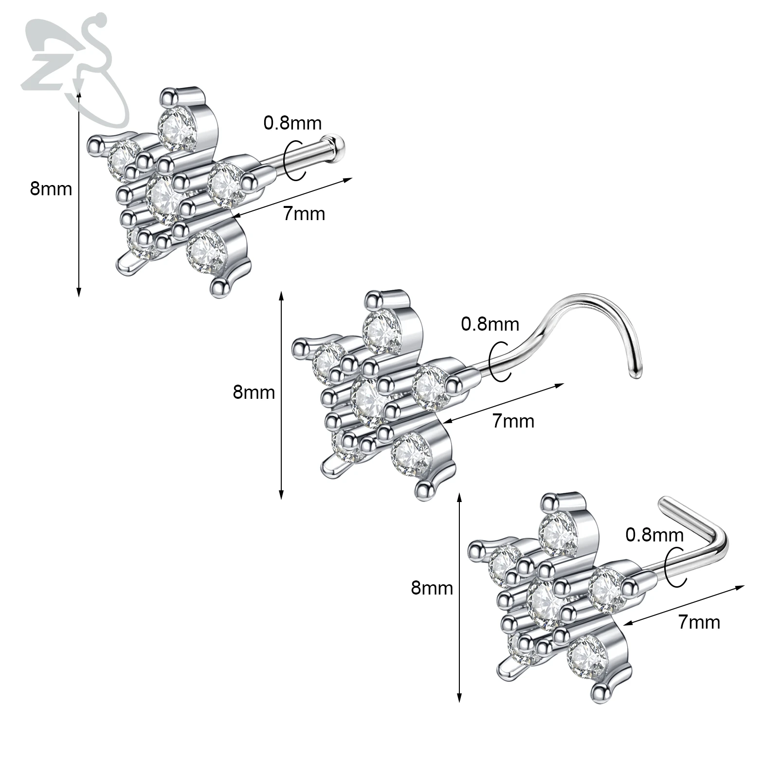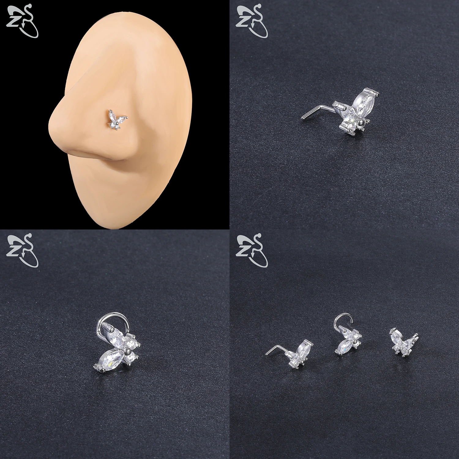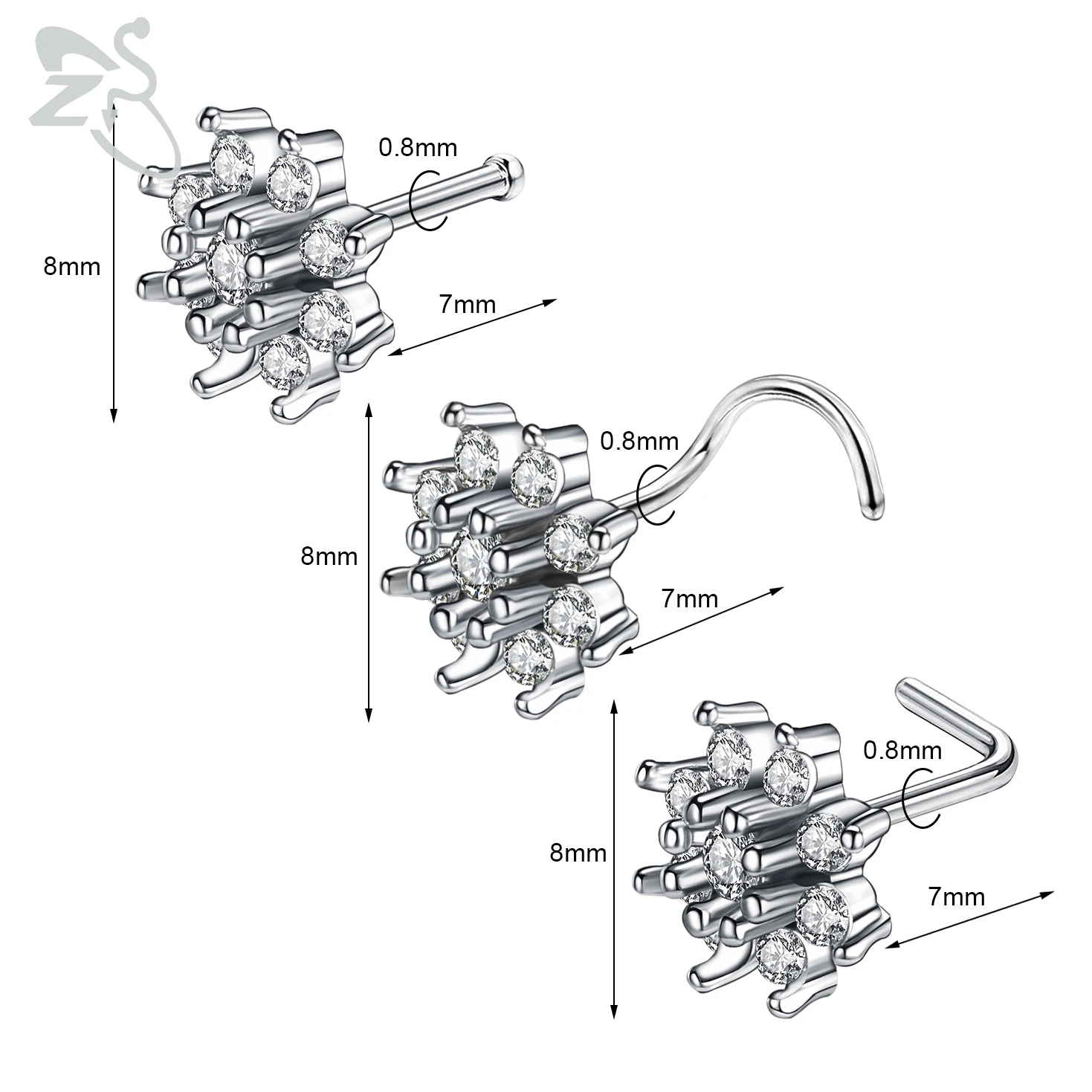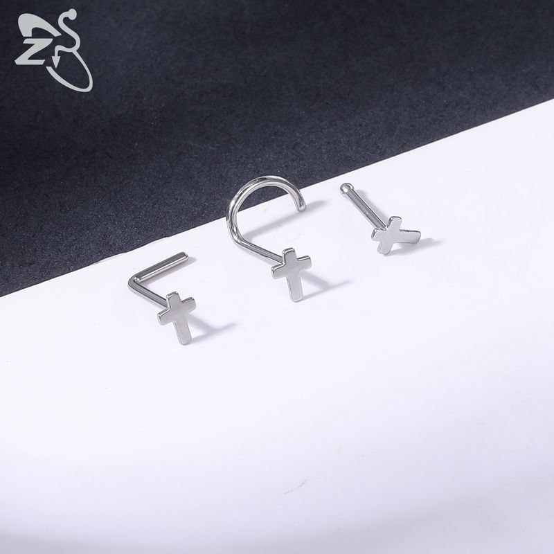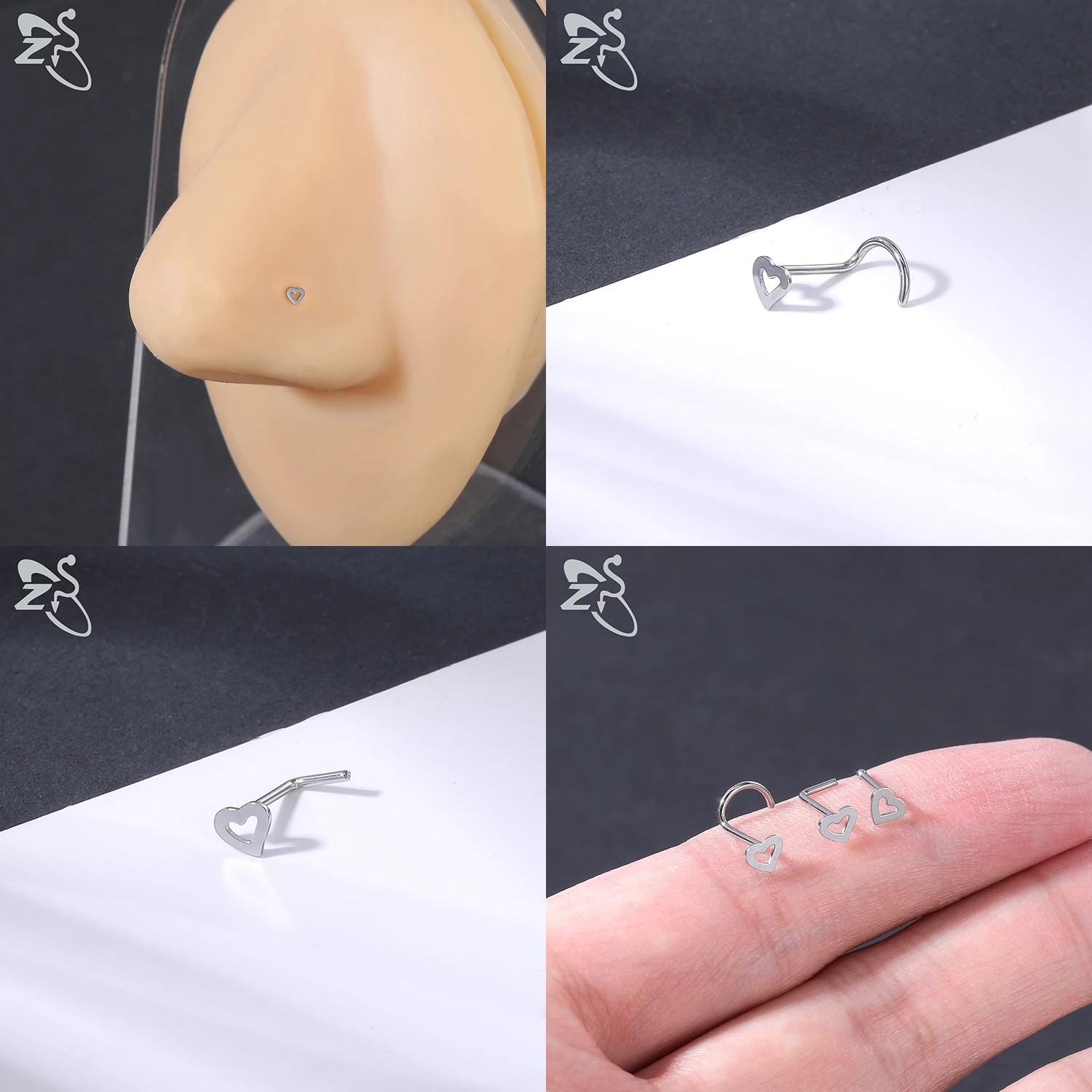 ZS 1 Piece CZ Crystal Nose Stud Men Heart Bee Cross Shape 316L Stainless Steel Retainer Pin L Shape Nostril Piercing Jewelry 20g