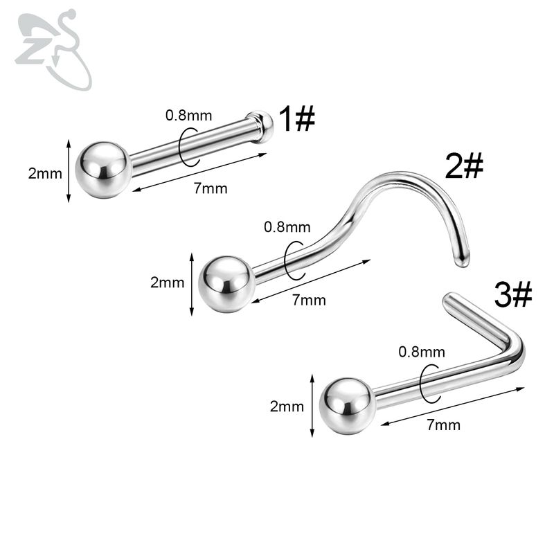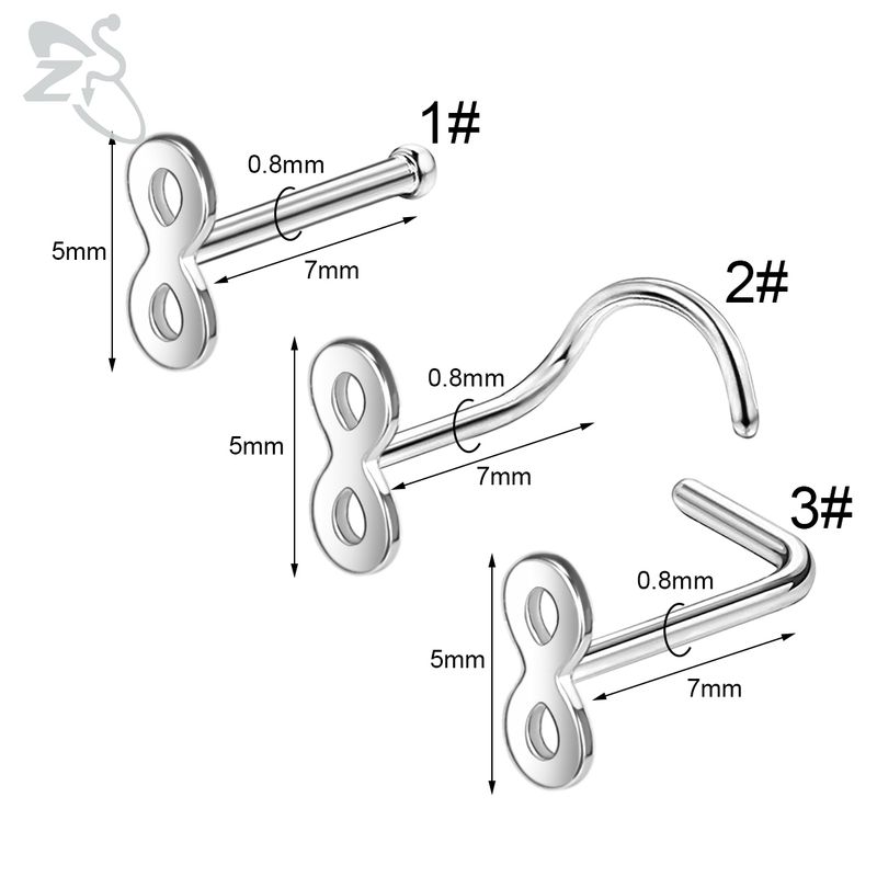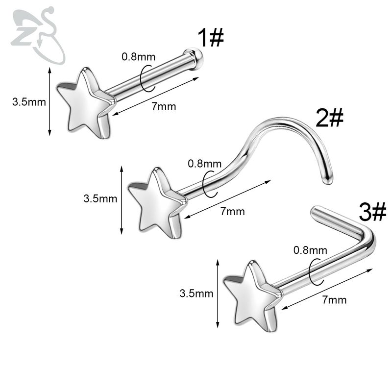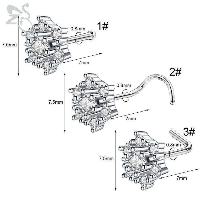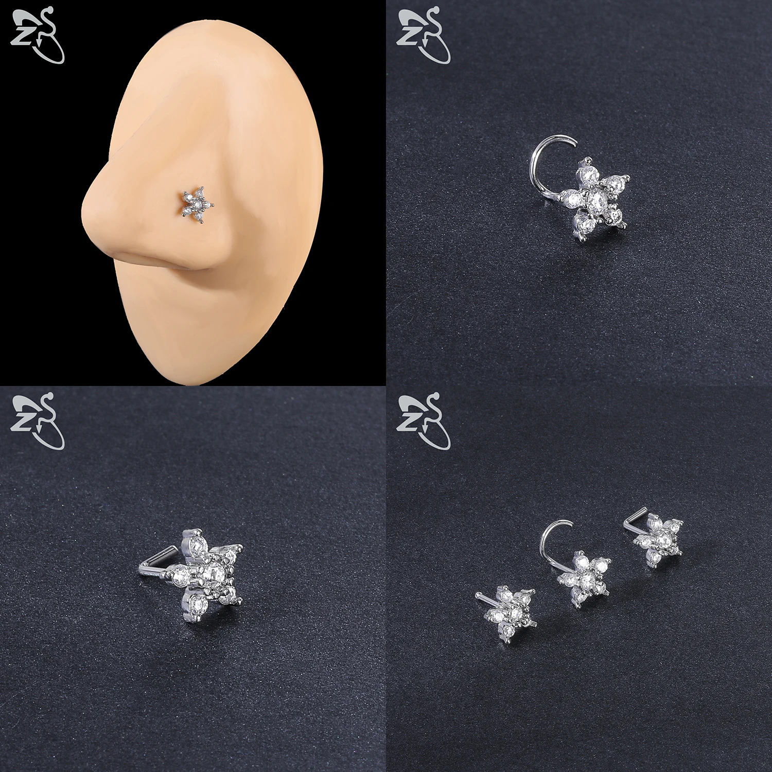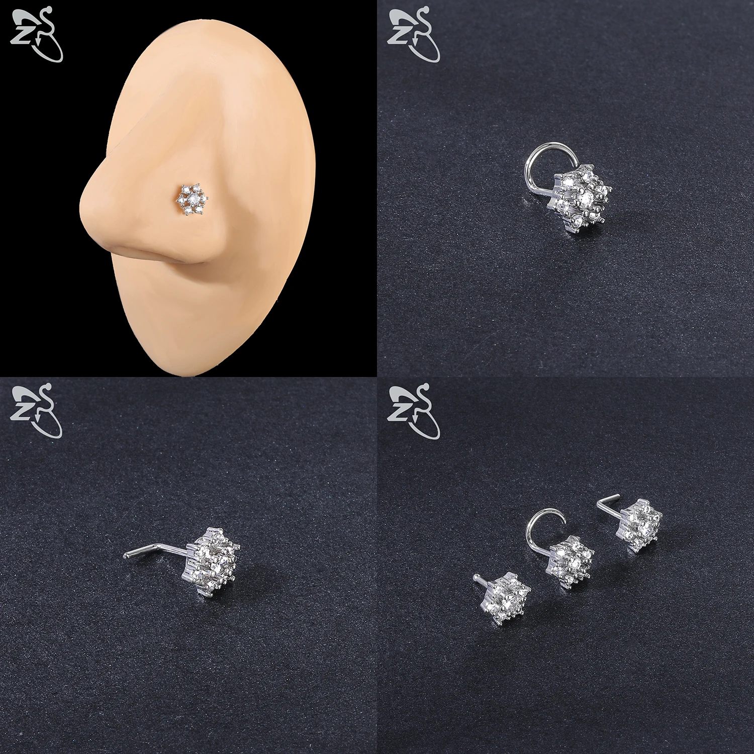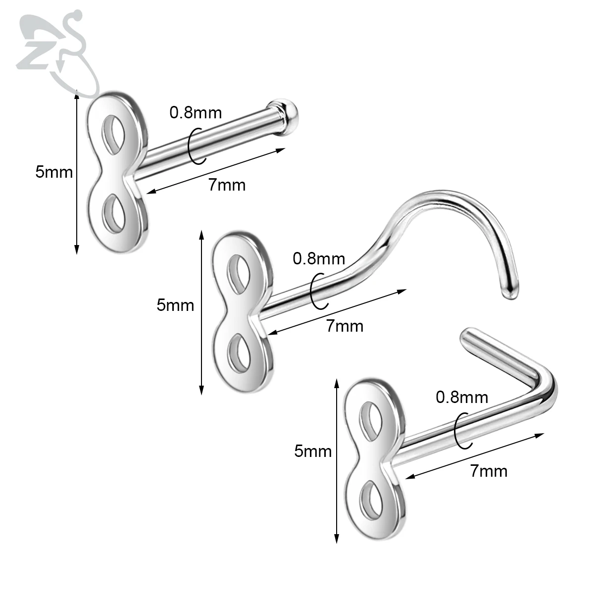 ZS 1 Piece CZ Crystal Nose Stud Men Heart Bee Cross Shape 316L Stainless Steel Retainer Pin L Shape Nostril Piercing Jewelry 20g