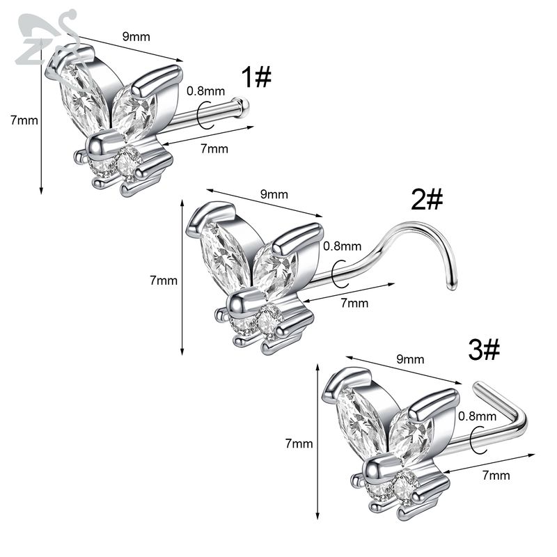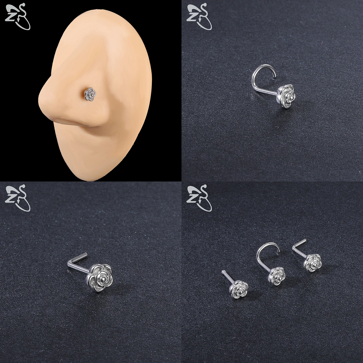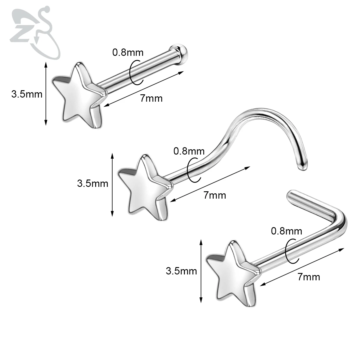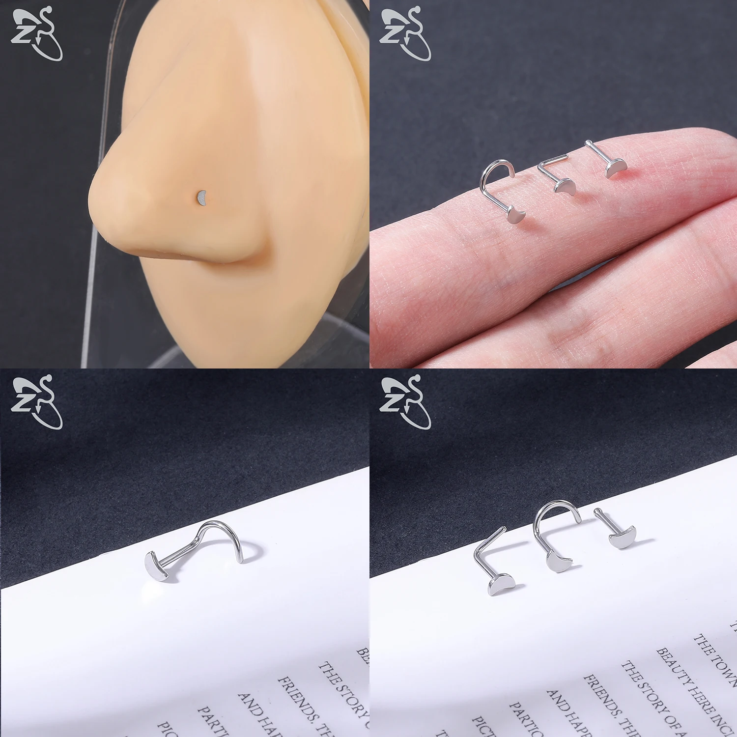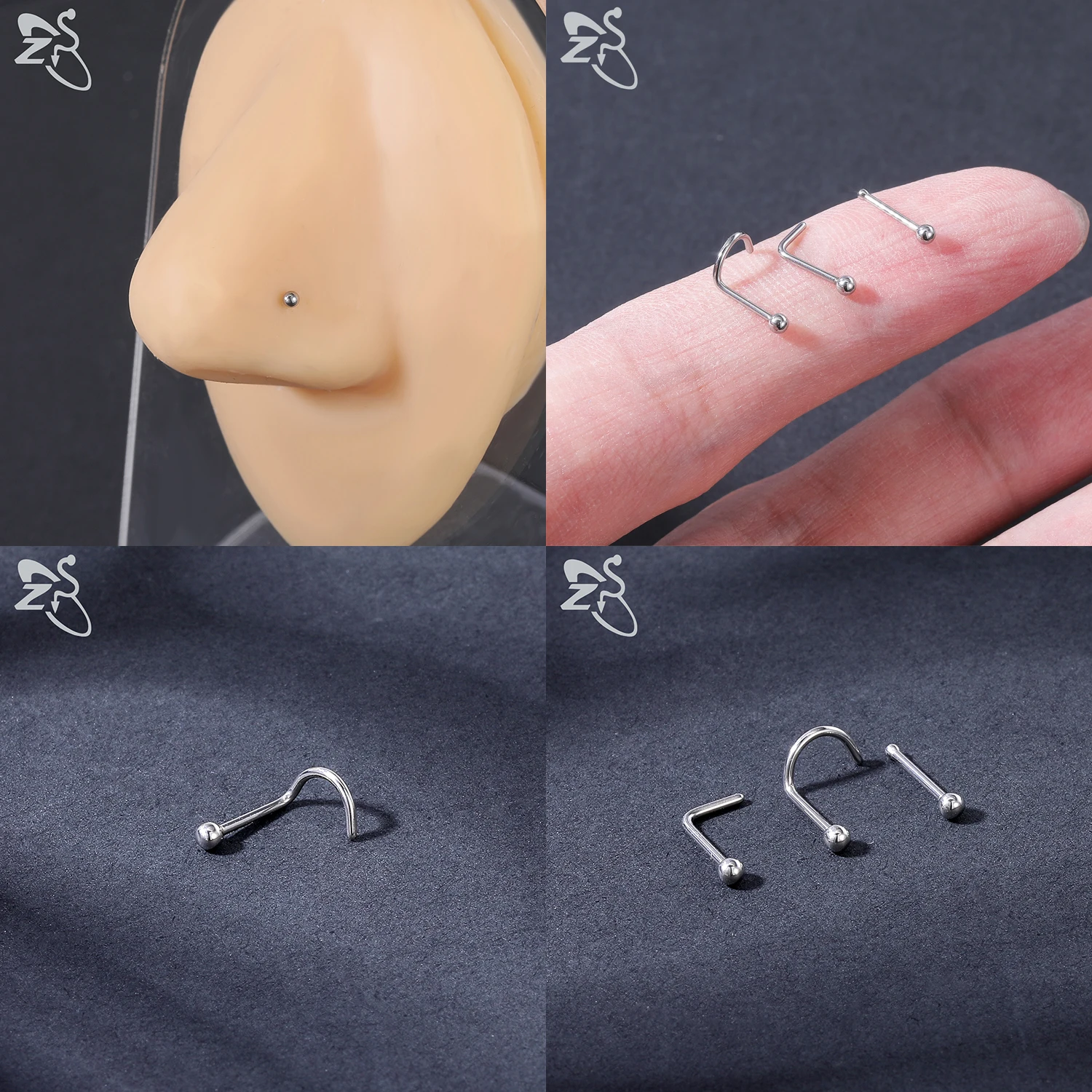 ZS 1 Piece CZ Crystal Nose Stud Men Heart Bee Cross Shape 316L Stainless Steel Retainer Pin L Shape Nostril Piercing Jewelry 20g