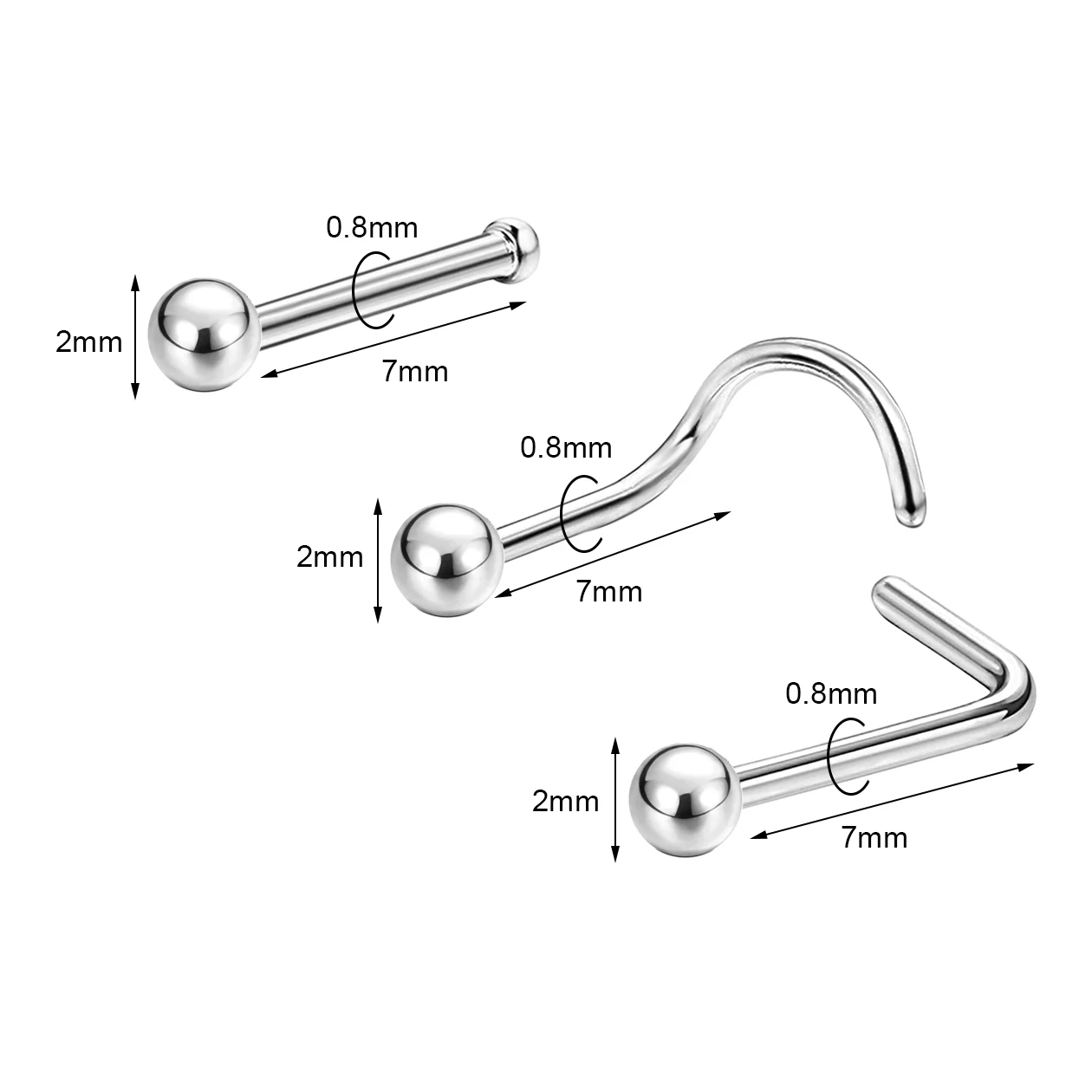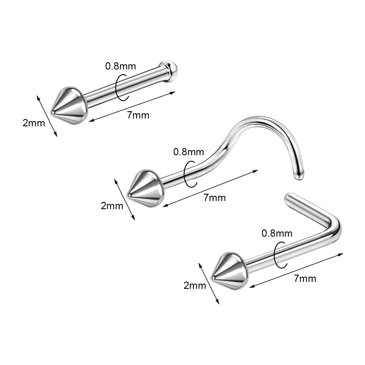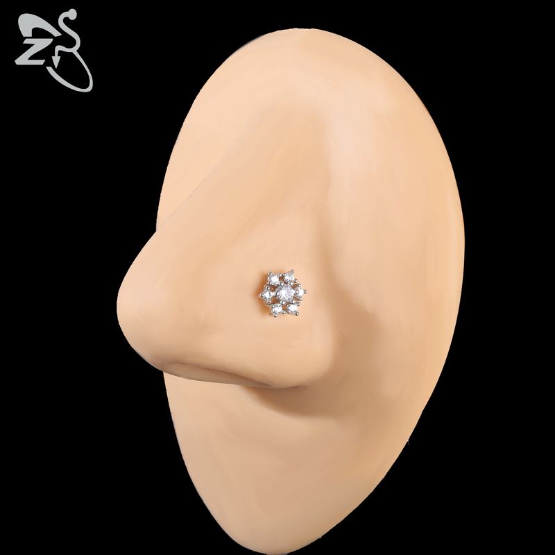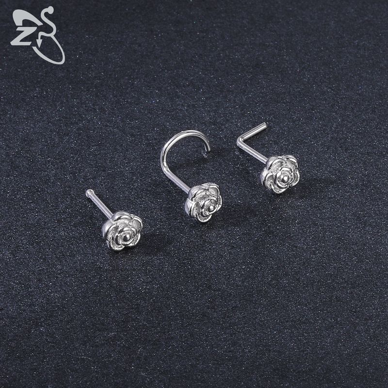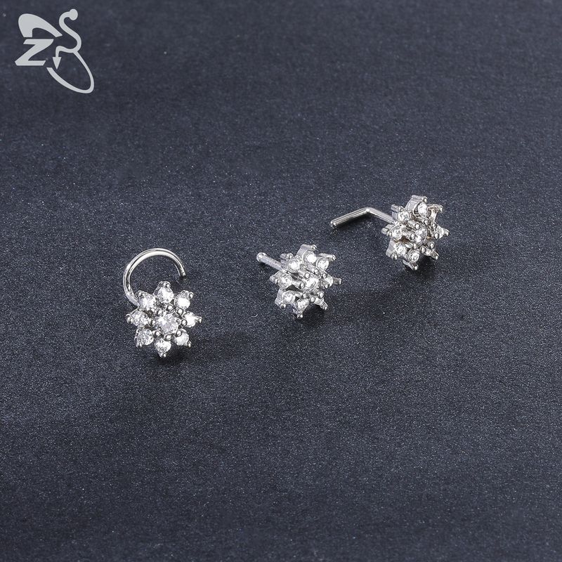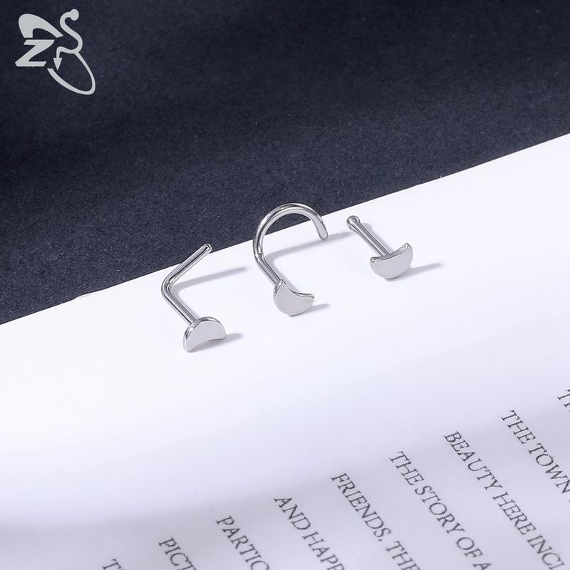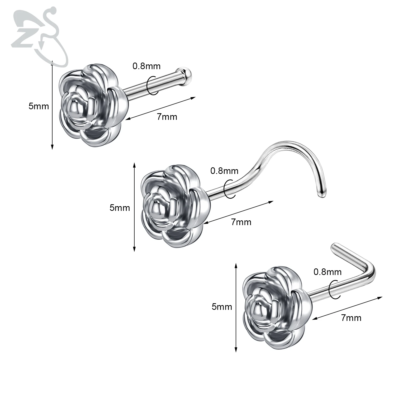 ZS 1 Piece CZ Crystal Nose Stud Men Heart Bee Cross Shape 316L Stainless Steel Retainer Pin L Shape Nostril Piercing Jewelry 20g