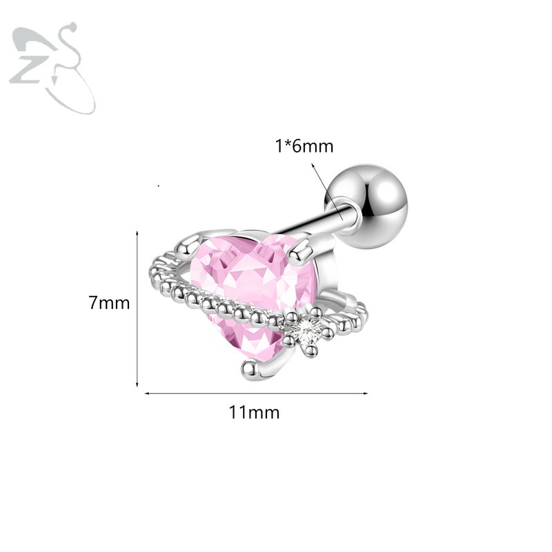 ZS 1PC 18G Stainless Steel Stud Earrings for Women Butterfly Heart Moon Shape Earring Simple Korean Ear Helix Cartilage Piercing
