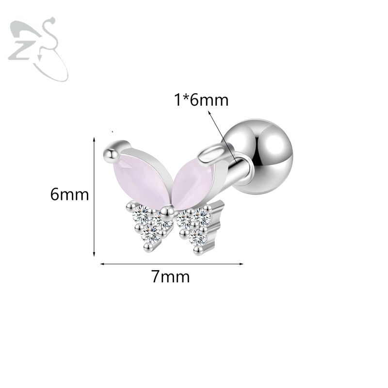 ZS 1PC 18G Stainless Steel Stud Earrings for Women Butterfly Heart Moon Shape Earring Simple Korean Ear Helix Cartilage Piercing