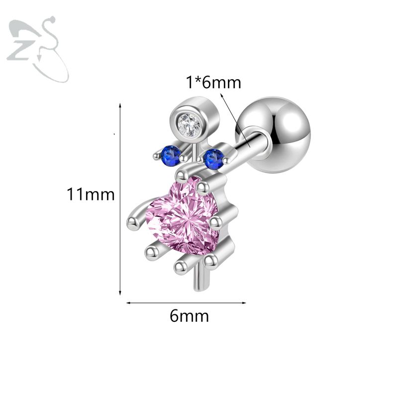 ZS 1PC 18G Stainless Steel Stud Earrings for Women Butterfly Heart Moon Shape Earring Simple Korean Ear Helix Cartilage Piercing