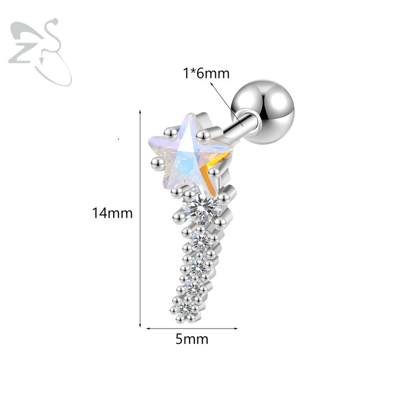 ZS 1PC 18G Stainless Steel Stud Earrings for Women Butterfly Heart Moon Shape Earring Simple Korean Ear Helix Cartilage Piercing
