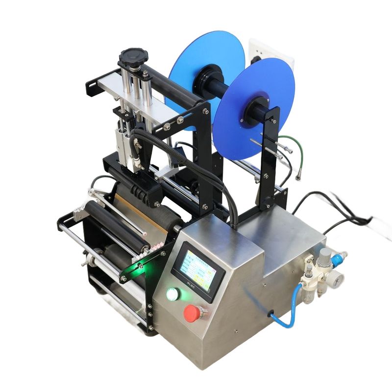 Machine Description:   The semi-automatic round bottle sticker labeling machine is suitable for all kinds of cylindrical objects and small taper round bottles, such as xylitol bottles, cosmetic round bottles and wine bottles. It can realize full-cycle/half-cycle labeling, circumferential positive and back labeling, and the distance between positive and negative labels can be adjusted arbitrarily. Circumferential position detection devices can be optional to achieve circumferential position marking. It can be equipped with a color tape printer and an inkjet printer, and can print information such as production batch numbers at the same time, reducing packaging processes and improving production efficiency. It is widely used in food, cosmetics, chemical, pharmaceutical and other industries.