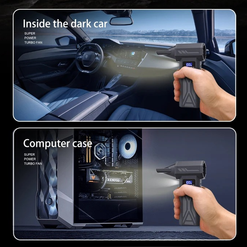 Easy to use operation:Knob stepless speed regulationThe user-friendly design of portable turbo fans ensures easy functionality. In addition, the charging board also has safe and reliable charging protection and overheating protection functions. The internal brushless motor can achieve high speeds of up to 130000RPM (revolutions per minute).
