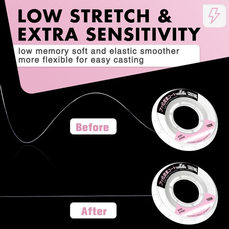 3•Higher Abrasion Resistance - Low Stretch, high strength, superior abrasion resistance, higher density, and greatly reduced visibility make ZUKIBO fluorocarbon Coating Fishing Line a great upgrade from mono line and ideal low cost alternative to fluorocarbon line.